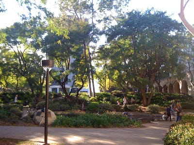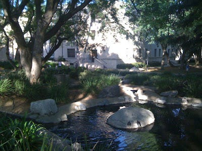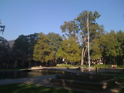 Around Millikan Library. If the campus looks empty, well, it is. There are just over 800 undergrads and about 1000 grad students, IIRC.